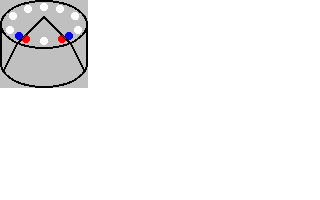 Displacing the Center. This is a technique of actually taking far more pudding than is often considered a normal portion, and actually making it look smaller! Its only disadvantage is that it leaves a rather misshapen pudding, and other people will have difficulty taking equally large portions. Essentially, one simply moves the center of the pudding to further away from the curved side. This has the visual effect of reducing the pudding size, since the angle subtended at the blue point is smaller than that at the red point would be.